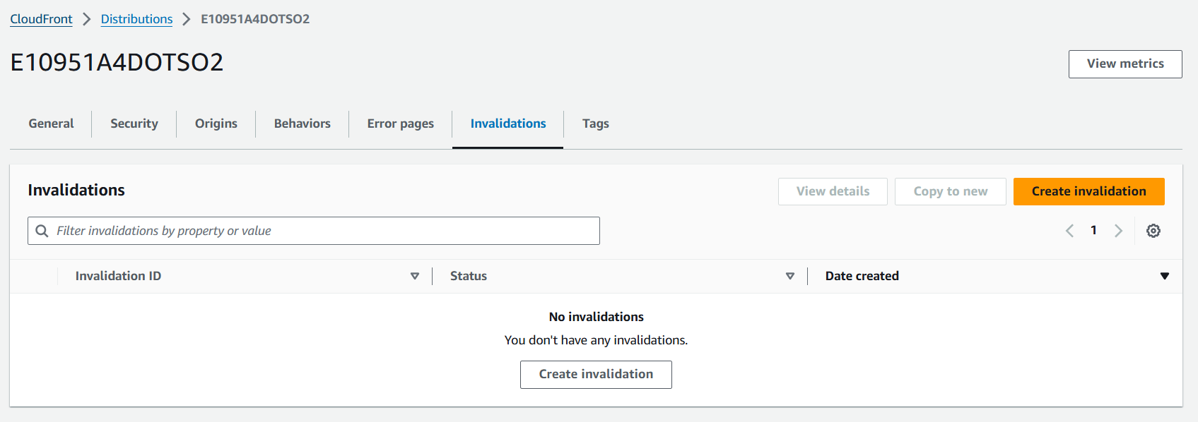 cloudfront의 invalidation 옵션에서 제거할 캐시의 경로를 지정해주자. 파일이 한개밖에 없었지만 파일 이름이 길기도 해서 /* 로 전체를 날려버린다고 했다.