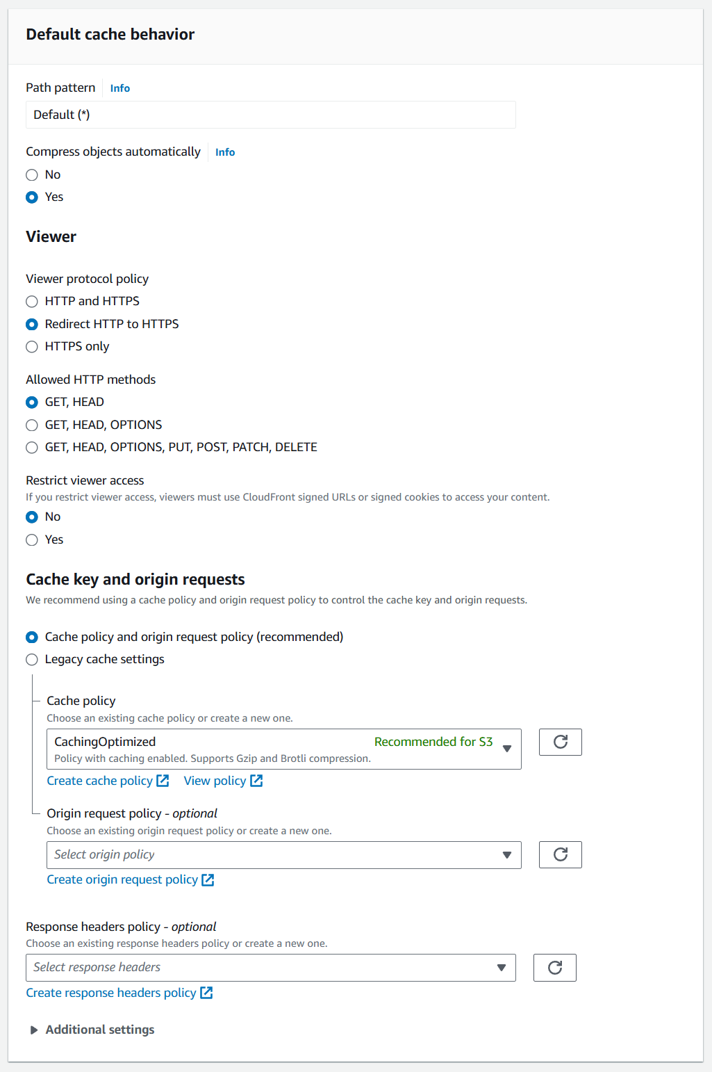 origin path : 선택사항이며, 버킷에 여러 폴더가 존재하고 특정 폴더 선택만 하기 위해 존재한다.
