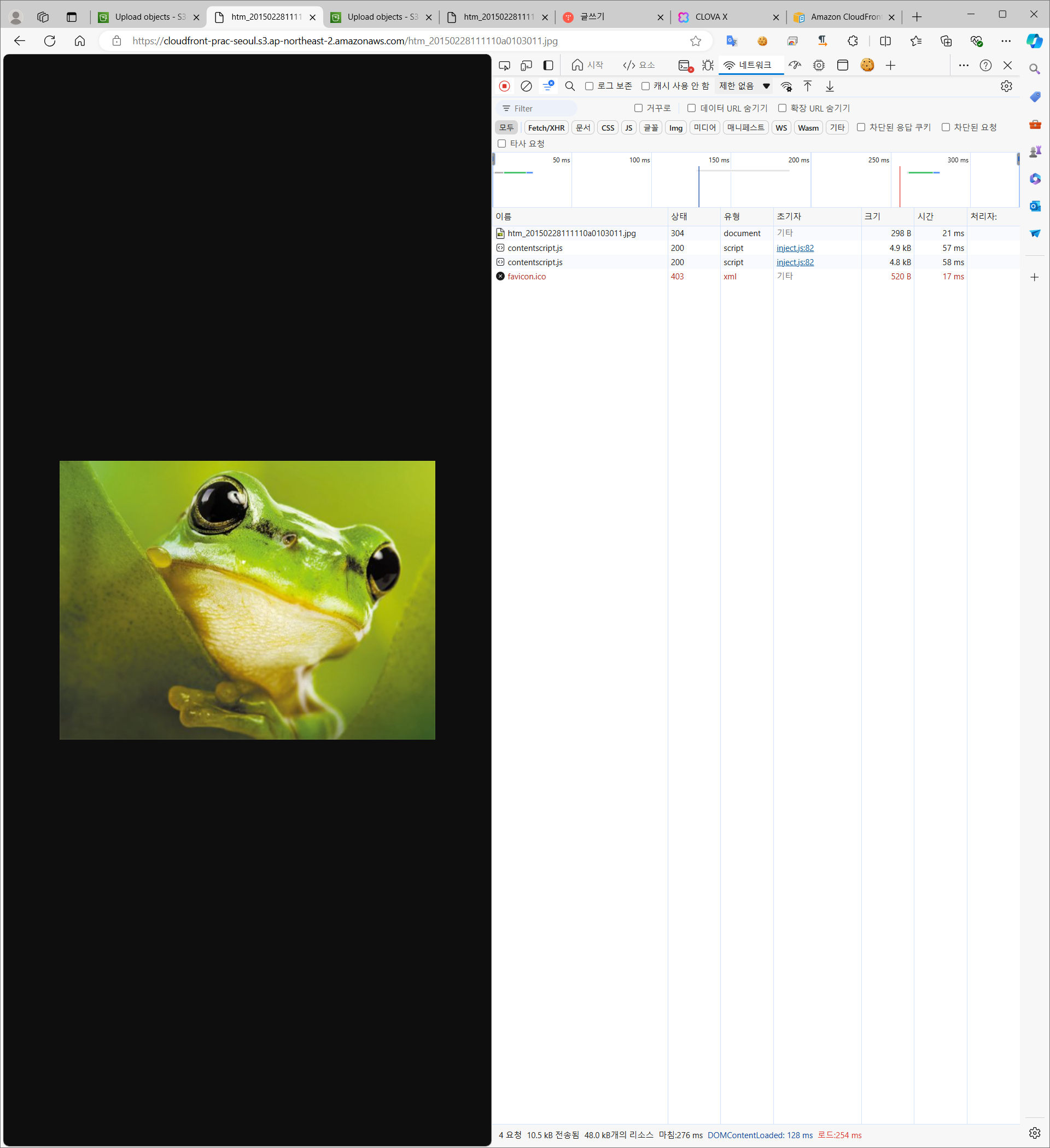 캡처를 못했지만 첫 접근때는 700ms 정도 걸렸는데, 다시 접근했더니 서울 리전보다 2ms 빠른 속도로 로딩이 되었다. 왜냐면 처음에는 origin에 요청해서 컨텐츠를 갖고와 캐시에 저장하고 제공해주기 때문이다.