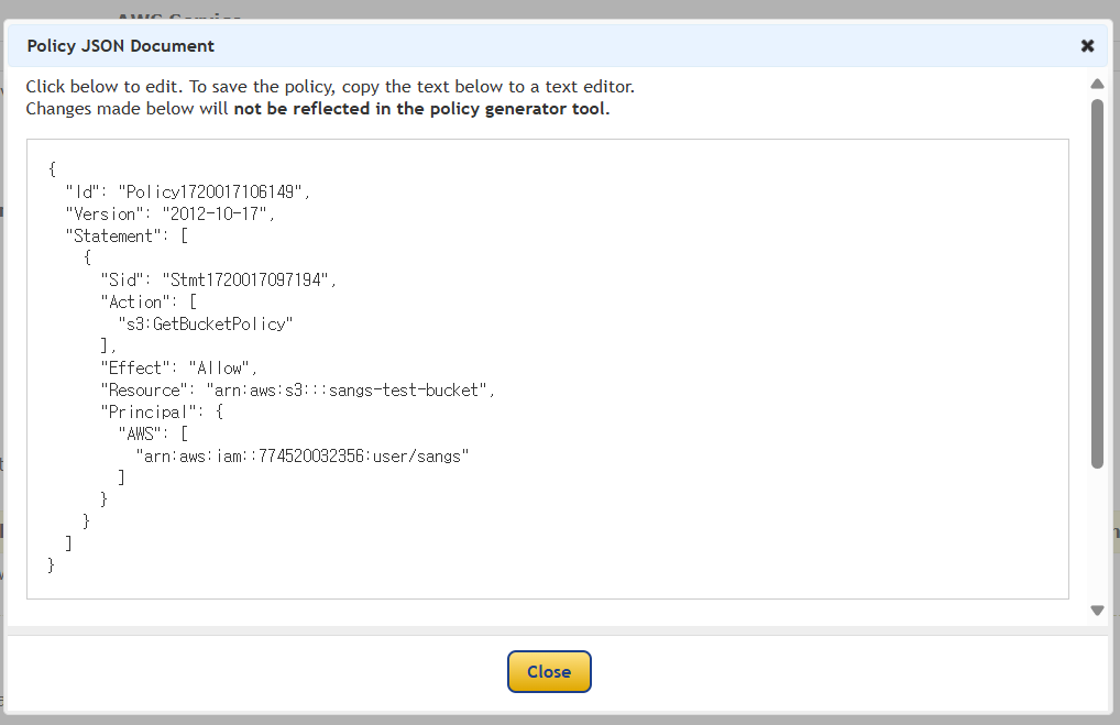 JSON을 몰라도 정책 생성기를 통해 생성이 가능하다.