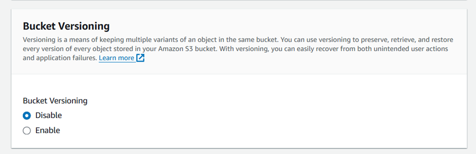 버킷 버전관리 옵션은 동일한 이름의 파일을 버킷에 올리는 경우, 해당 옵션이 활성화 되어있으면 파일을 덮어씌우는 것이 아니라 별도의 파일로 관리를 한다.